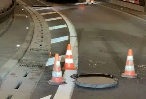Mit einem Saugwagen der Fa. Fink wurde über Nacht die Kanalanlage im Petueltunnel in München gereinigt und abgesaugt. Jeder Handgriff sitzt, der Tunnel ist zum morgendlichen Berufsverkehr wieder freigegeben.