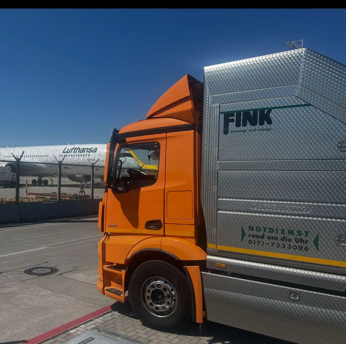 Fachgerechte Entsorgung von Batteriesäure im Auftrag der Lufthansa mit einem Spezialfahrzeug durch die Fa. Fink