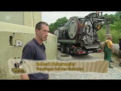Einsatz eines Fink Saug- und Spülwagens in der Elefantenanlage im Tierpark Hellabrunn, München